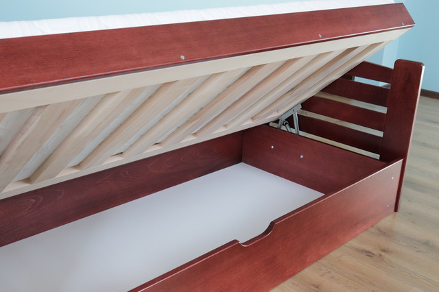 Ліжко дерев'яне з підйомним механізмом Карлсон виконане з натурального екологічно чистого дерева - масива бука. Ця модель ліжка укомплектована підйомним пружинним механізмом, який забезпечує легкий доступ до просторого коробу для білизни.